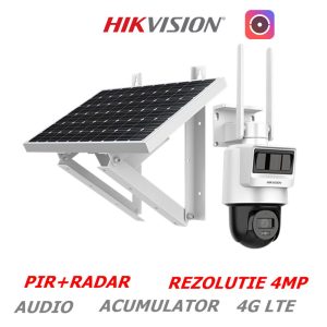 Camera PT IP 4G LTE Hikvision de 4MP cu panou solar este soluția profesională ideală pentru supravegherea locațiilor fără curent electric sau conexiune la internet. Datorită senzorului CMOS de 1/2.7”, iluminării IR de 30 m și funcției PTZ cu rotație rapidă pan/tilt, camera oferă imagini clare și detaliate în orice condiții de lumină.