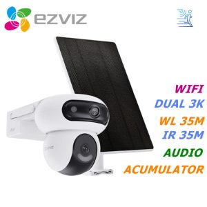 Cameră IP Dual-Lens EZVIZ HB90 Dual 4MP PT cu Wi-Fi6, Baterie 10.400 mAh, Audio Bidirecțional, IR 35M și Panou Solar 8W