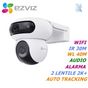 Camera suportă înregistrare pe Micro SD până la 512 GB sau EZVIZ CloudPlay, integrare cu Google Assistant și Amazon Alexa, și oferă Wi-Fi cu rază mare de acoperire (până la 220 metri în câmp deschis). Rezistentă la intemperii (IP65) și funcționând între -30°C și 50°C, H90 Dual este soluția profesională ideală pentru locuințe, birouri sau zone comerciale.